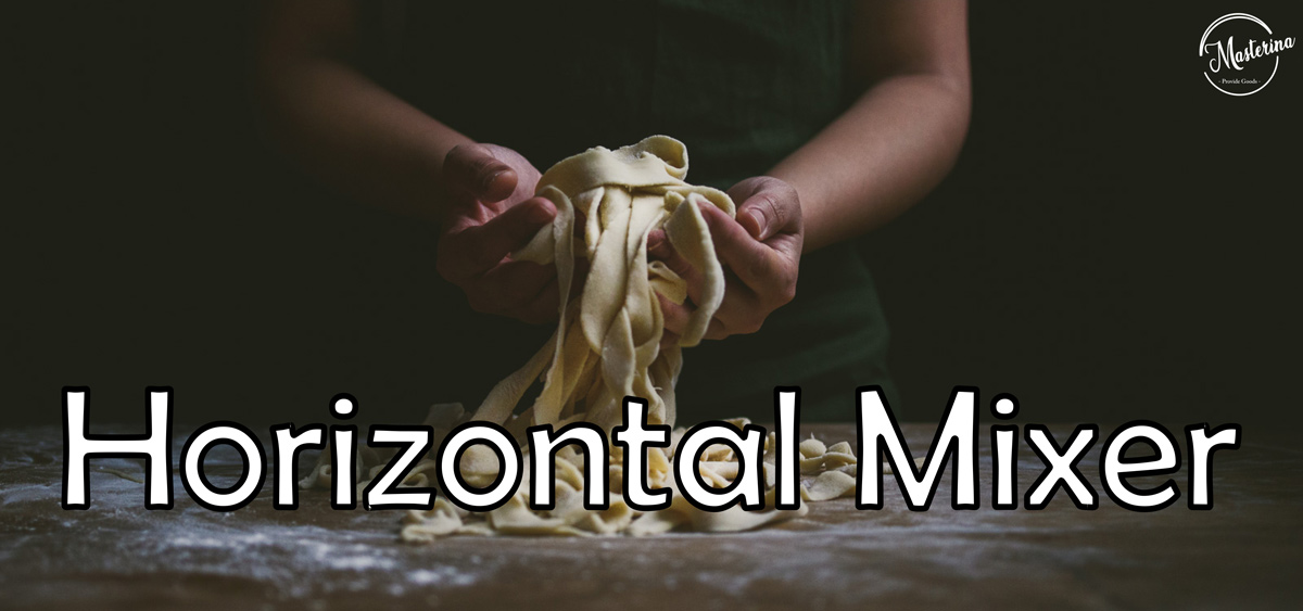 Horizontal mixer ini memiliki perbedaan pada pisau aduknya dibanding dengan jenis mixer lain. Jenis Mixer ini juga sudah mulai bisa untuk mecampur adonan yang cenderung lebih berat dibandingkan yang lainnya. Horizontal mixer biasanya digunakan juga bagi para produsen mie. Proses mengaduk dan mencampur adonan pada proses pembuatan mie cenderung lebih berat. Pisau dengan posisi tertidur ini mencampur dari bagian samping dengan tekanan yang berbeda dengan pisau dari atas. Hal ini menciptakan gaya yang berbeda pada proses “mix” adonan.